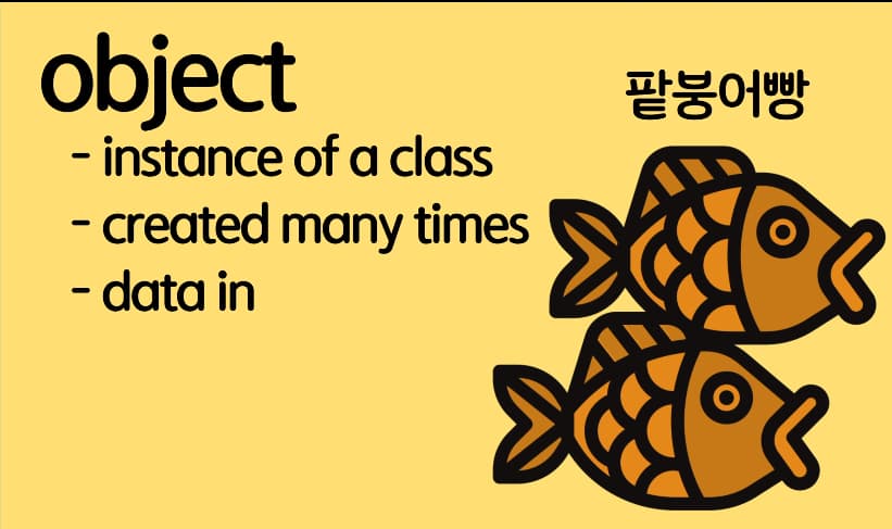 실제로 이 클래스를 이용하여 데이터를 넣어서 만드는 것이 바로 object ( 객체 ) 이다 .