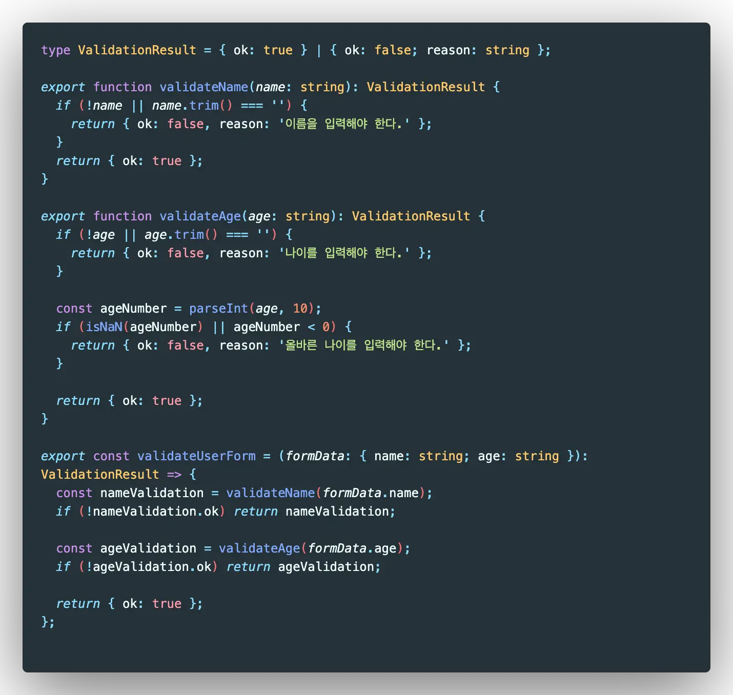 기존 Form 검증 로직도 유틸 함수로 분리할 수 있다.